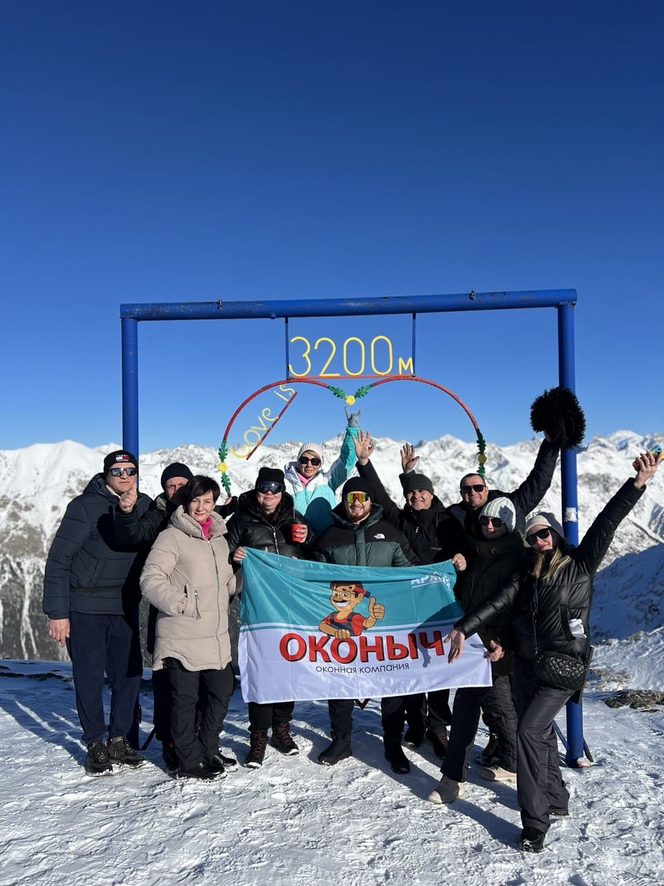 На этом фото мы всей командой стоим на вершине Домбая. Для нас это не просто совместная поездка, а символ того, как мы работаем каждый день. Подъём в гору - это путь, который требует усилий, поддержки и доверия друг к другу. В «Оконыч» мы точно так же идём к результату: вместе, шаг за шагом, не боясь сложных задач и высоты ответственности.